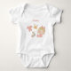 Whimsisk teckning av en liten blondhårig flicka, abc-klossar, en matservett och en klänning. Du anpassar den med ditt barns namn högst upp. Mörkhårig flicka finns också tillgänglig.