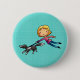 Presentera en digital illustration för gullig tecknad av en blond kvinna i en purpurfärgad rosa tunika och jeans som along dras av henne svartvit spaniel på ett bly-, som de går för en gå.