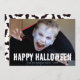 Skicka scoky hälsning med det här skrämmande Halloween-fotokortet med "Happy halloween" i fet, fetstil och vit text. Anpassa framsidan med ditt favoritfoto för vågrät och din familj namn i matchande vit text för en anpassningsbar. På den omvända sidan visas en mörk svart fladdermus mönster, som blandar skum och söt för en roligt Halloween-design. Perfekt för att dela helgdag med vänner och familj.