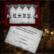 En mjuk mörk och gutherröd silke-bröllop OSA, med rik, sliten röd silke (endast tryckt) bakom ett antiskt, grått parchment-utseende med en rad gotiska snöre och faux metall över överkanten, med par av grå, rödögda silver döskallar hängande från vardera sidan. Observera att den här mörken är romantisk OSA en del av en större matchande samling med inbjudan, spara datum och mycket mer, som du kan läsa på högerna här: https://www.zazzle.com/collections/blood_roses_and_silk_red_gothic_wedding-119200349504887025