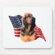 USA! Amerika! Skriv pridet med den här patriotiska bakgrunden i fantastisk flagga med detta AKC hund aveln Bloodhound i förgrunden. Visa ditt pride med den här designen på en t-shirt, mugg och mycket, mycket mer!