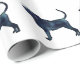 Blodhound-jaktspårningssökning och rädding hund aveln Sidosilhouette fylld med svart vattenfärg. Den här hund aveln-vyn kan också representera: Bloodhound, Hound, Ariegeois, Artois, Bracco Italiano, Fila Brasileiro, Fila, Hunting, scent hound, search and rädding