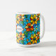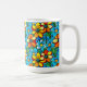 Denna klassiska keramikkopp har ett livfullt blommönster som sprudlar av färg - soliga gula, varma orange, djupa röda och uppfriskande blå nyanser i lager över en rik blå bakgrund. I mitten sitter en elegant oval etikett med ordet BLOOM som skapar en vacker fokuspunkt som firar tillväxt, positivitet och vardaglig glädje. Den täta botaniska konsten sveper runt koppen och ger den en livlig, uppiggande känsla som gör morgonrutiner ljusare och tillför en glad ton till vilken skrivbord eller köks hylla som helst.