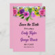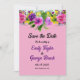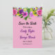 Denna inbjudan från elegant blommigt bröllop spara datum är perfekt för en modern blommigt bröllop. Den romantiska designen har en färgstark vattenfärgad blommigt bouquet med elegantens svarta typografi på rosa.