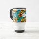 Denna resemugg har ett livfullt blommönster som sprutar färg – soliga gula, varma orange, djupröda och uppfriskande blå nyanser mot en rik blå bakgrund. Den höga, moderna siluetten visar konstverket på ett djärvt och iögonfallande sätt och gör din dagliga kopp kaffe eller te till en glad moment av färg. I mitten tillför en elegant oval etikett med ordet BLOOM en touch av inspiration som firar tillväxt, positivitet och vardagsglädje. Med sin isolerade rostfria stålinsats och säkra lock håller muggen drycken varm under resor till jobbet, promenader eller hektiska dagar på språng.