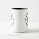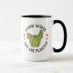 Ett inspirerande kaffe mugg med talesättet "Bloom där du är planterad". Det är dekorerat med en kaktus och hjärtan.
