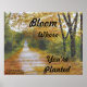 "BLOOM DÄR DU ÄR PLANTERAD" är en motiverande POSTER i SUNSHINS dekorativa samling. Det återges från en ursprunglig oljemålning av Kentucky-konstnären och författaren Gerry K. Furgason. Arbetet ingår i hennes SOUTHERN DRAWLS-serie med ord att leva med och formuleringar att minnas, liksom hennes samling PRAYERS OCH PHRASES.