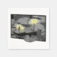 Den här ur ram-bilden har två ömtåliga vatten-liljor i mjuka, blek-gult-nyanser, som tydligt framträder mot en bakgrund av muterade, gråskalelila dynor och vatten. Blommorna sträcker sig bortom det svarta ram som skapar en dynamisk, nästan tredimensionell effekt. Kontrasten mellan de vibrerande blommorna och de subducerade omgivningarna belyser scenens milda skönhet och lugn, och framkallar en känsla av lugn och tyst elegans.