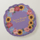 Set against the gentle purple backdrop, the heartfelt message “Bloom where you live!” invites a touch of personalization, making this round pillow uniquely yours.