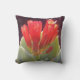 Bilden på Dekorativ kudde är ett originalfoto av ZoeSPEAK av en agave-växt som blåser i trädgården. Att sätta sol ljus upp de vermionröda petalerna från de snart öppna blommorna, ge dem en varm gult mot mörkens bakgrund. Agavens skivformade löv omger blommorna med deras mjuka blåaktiga grönt färg.