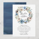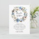 Våra häpnadsväckande blooming Beauty-bröllopsinbjudningar har med namn i ett modernt kalligrafiskript omgivet av en blommigt krans av antika vita och indigo blå vattenfärgblommor med muterad grönt löv. Den omvända sidan av inbjudan har en djup blå vattenfärgsbakgrund. Anpassa bröllopsinbjudningarna genom att lägga till namn och bröllop för ett inbjudan som imponerar på dina gäster.