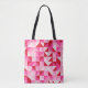 This image is a bright, abstract geometric pattern composed of triangles and chevron-like shapes in various shades of pink, blush, and red arranged in a repeated grid. The design creates a dynamic, vibrant, and playful effect, reminiscent of a fabric quilt or a puzzle made of color blocks. Each tile combines light and dark tones, forming a sense of movement and symmetry across the canvas.