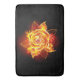 Blooming rose from fire and flame on black background.