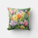 Blooming Tulips in watercolors Kudde
