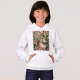 De blommorna och Bunny Dreams-hoodie har en ren vit kanin i en lush rosa blommigt med färska morötter, som skapar en charming och snyggt Påsk ser perfekt ut för vårtid i mode.