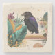 Das Bild zeigt einen majestätischen Raben mit glänzendem schwarzem Gefieder, das violette und blaue Akzente einfängt, sitzend auf einem Ast inmitten üppiger tropischer Pflanzen. Umgeben von leuchtend grünen Blättern, bunten Blumen und einem warmen Farbverlauf, strahlt es eine mystische Ruhe und wilde Schönheit aus. Die harmonischen Farben und die detaillierte Natur vermitteln ein Gefühl von Abenteuer und Verbindung zur Natur.