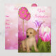 Inbjudan Flickas Födelsedagsfest Party Rosa och Lila Blommor, Labrador Valp med Rosa och Gula Ballonger. Bramble Blossom 9 Bakgrund