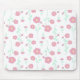 Light and cheerful floral pattern featuring pink flowers with soft yellow centers and airy mint green leaves on a clean white background.