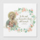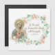 Med en vacker, traditionell katolsk bild av den välsignade jungfrun Mary, Mary, det makulerade hjärtat med citatet från apparitionen på Fatima: "I slutändan kommer mitt omakulerade hjärta att triumma." Blommorna i persiko-eukalyptus ger en trevlig beröring.