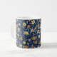 Elegant coffee mug in moody navy blue with pops of yellow and orange – perfect for gifting and your morning coffee.