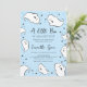 Firar Halloween med vår fantastiska, blå lilla babybojinbjudan! Den här viskfulla inbjudan innehåller ett vackert spöke som ställs mot en blå serenbakgrund som sprinklas med tvillingstjärnor, och som skapar en magisk och festlig atmosfär. Perfekt för en Halloween-temad babydusch. Den här inbjudan kombinerar baby firande och Halloween-roligten. BBS497