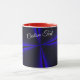 Enjoy your next cup of hot chocolate in this special coffee mug. This geometric beauty features a trendy blue accented clover leaf design and custom text.