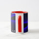 Enjoy your next cup of hot chocolate in this unique coffee mug. This geometric beauty features a trendy blue red color accented clover leaf theme design and personalized custom text.