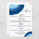 Add a bold artistic statement to your reception tables with this blue agate sliced wedding menu card, inspired by the natural beauty of blue agate stone slice illustrations. Featuring layered geode-style textures, rich blue color streaks, soft gradients, and painterly brush strokes, this design offers a striking alternative to traditional floral wedding stationery.
