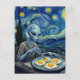 Blue Alien Eating Fried Eggs Faux Van Gogh Vykort