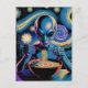 Blue Alien Eating Ramen Vykort