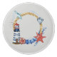 En blå fyr och nautiska mönster på benvit bakgrund. Du kan ändra bakgrunden som du vill.
