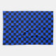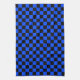 A blue and black checkerboard pattern fills the image, creating a uniform, alternating grid of squares, conveying a bold and geometric feel.