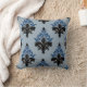 Classic Damask style design in blue and black on a light blue background throw cushion.