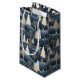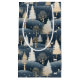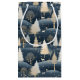 A lush winter pattern featuring deep blue fields topped with falling snow, cream deer silhouettes, and hearty cream winter pine trees dotting the landscape.