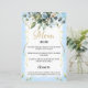 Blue and Gold Elegant Floral Rustic Menu Card