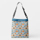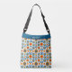 Flowers of blue and gold, in a folk art style, makes this crossbody bag eye-catching and very pretty. Colorful, stylish, and chic.