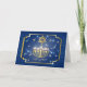 This lovely Hanukkah greeting card features a beautiful metallic gold menorah, Star of David and snowflakes on a light and dark winter blue decorative background. The text on the inside of the cards reads "May your life shine with the light of the Menorah candles. Remember what a miracle is. Warm wishes this holiday.". You can remove the text or customize it for the recipient of this card. We also have matching gift bags, wrapping and tissue paper with this design for you to check out. It will make a perfect addition to your gift for your friends and family this holiday season.