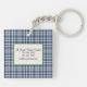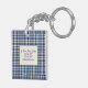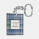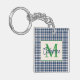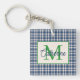 This monogrammed keychain features a blue and cream gingham plaid tartan with an accent of green. Personalize the matching blue and green monogram on the front with your choice of name and initial and your choice of text on the back. Perfect for party favors and back to school.