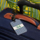 This monogrammed luggage tag features a blue and cream gingham plaid tartan with an accent of green. Personalize the matching blue and green monogram on the front with your choice of name and initial and your choice of text on the back. Perfect for party favors and back to school.
