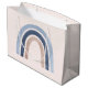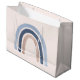 Gråväska med en söt och vismisk regnbåge. Blå och persikofärgade vattenfärger.