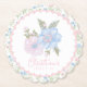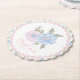 These paper coasters feature pink and blue flowers on a white scalloped background with a place to personalize with a name.