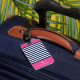 Lindo Diseño para etiqueta de Equipaje con un lindo patron estilo Nautico con colores Rosa, blanco y Azul marino, el diseño se puede personalizar la parte Frontal y la parte Trasera con tus Datos.