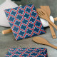 Blue and Red Moroccan Trellis, Lattice, Quatrefoil Kakelplatta