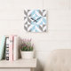 Blue and Silver Geometric ZigZag Fyrkantig Klocka