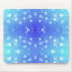 Blue and turquoise mouse pad with a bokeh pattern of white dots, creating a calming, abstract design. The pad is shown alone and with a white mouse.