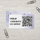 This professional business card features a modern design with a blue and white color scheme, complemented by a light blue back for a clean, stylish look. On the front, your name and job title are prominently displayed in black text on a white background, framed by subtle blue accents. A QR code is also included, allowing easy access to your online presence, portfolio, or contact details with a quick scan.