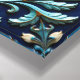 A square tile with a symmetrical floral design in shades of blue, white, and gold, ornate details, intricate patterns, elegant, royal blue background.