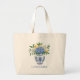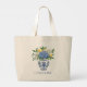 This canvas tote bag features beautiful blue and white chinoiserie vases with blue and white hydrangea flowers and lemons on the front and back. Personalize each side with your choice of name or special text. Fun for personalized gift bags and party favors.