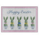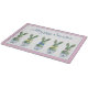 This personalized Easter glass cutting board features cute bunny rabbit green topiaries with pink, blue and yellow bows in blue and white chinoiserie flowerpots. Personalize with your choice of name or special text on the front. Perfect decor for your holiday party.