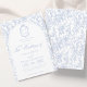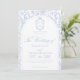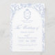 Soft delft blue floral wedding invitation card, designed in a refined blend of chinoiserie and French toile de Jouy style. The soft botanical illustrations frame an arched layout featuring an elegant wedding crest monogram, perfect for couples who love vintage, historic, and European-inspired aesthetics. Classic script typography pairs beautifully with the ceramic-blue palette, making this design an effortless nod to the tradition of “something blue.” Fully customizable with your names, date, and location, it’s an exquisite choice for any romantic or sophisticated wedding theme.